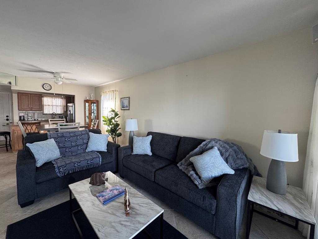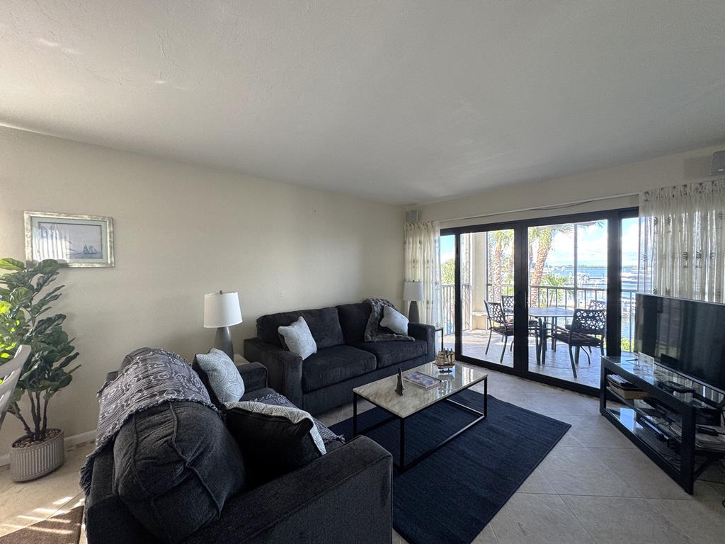 Comfy and accommodating this two bedroom, one bath(tub) unit boasts beautiful views of the Marco River!