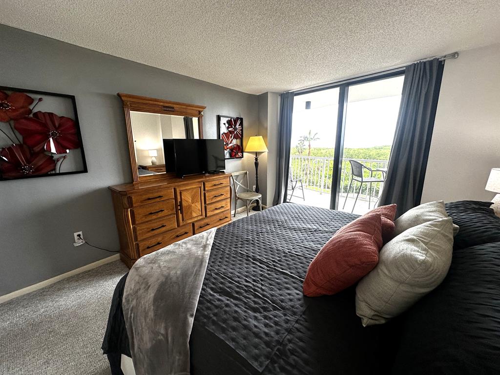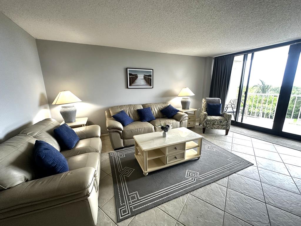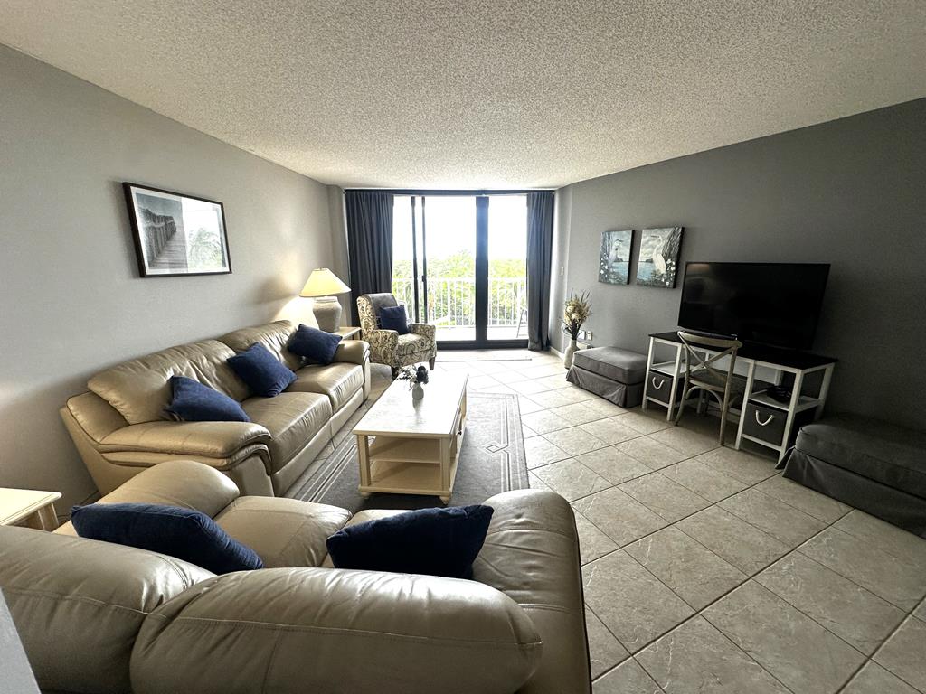 Open floor plan with Kitchen-Dining and Living Area opens to balcony overlooking the Estuary Tigertail Beach.